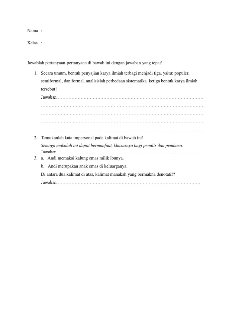 Contoh karya ilmiah remaja formal populer semi formla bahasa indonesia hallo sahabat pembaca yang budiman pada kesempatan. Contoh karya ilmiah berbentuk semi formal guru ilmu sosial. Contoh karya ilmiah berbentuk semi formal guru ilmu sosial. Oleh mas ale diposting pada 8 juli 2021. Bentuk populer bentuk dari karya ilmiah ini tidak terikat.