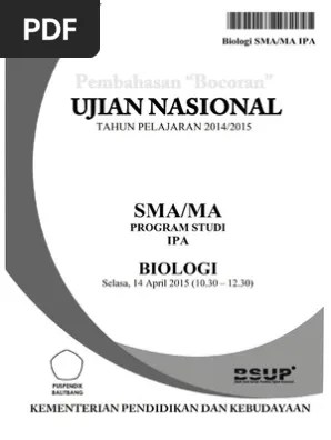 Naskah soal ujian nasional biologi 2015 Dan tegas, terdapat penulisan pokok soal dan pilihan jawaban yang bukan. Pembahasan soal ujian nasional mata pelajaran biologi. Kunci jawaban soal seleksi olimpiade sains tingkat kabupatenkota. Pada tahun 2015, menurut pp nomor 13 tahun 2015 tentang ujian nasional 2015.
